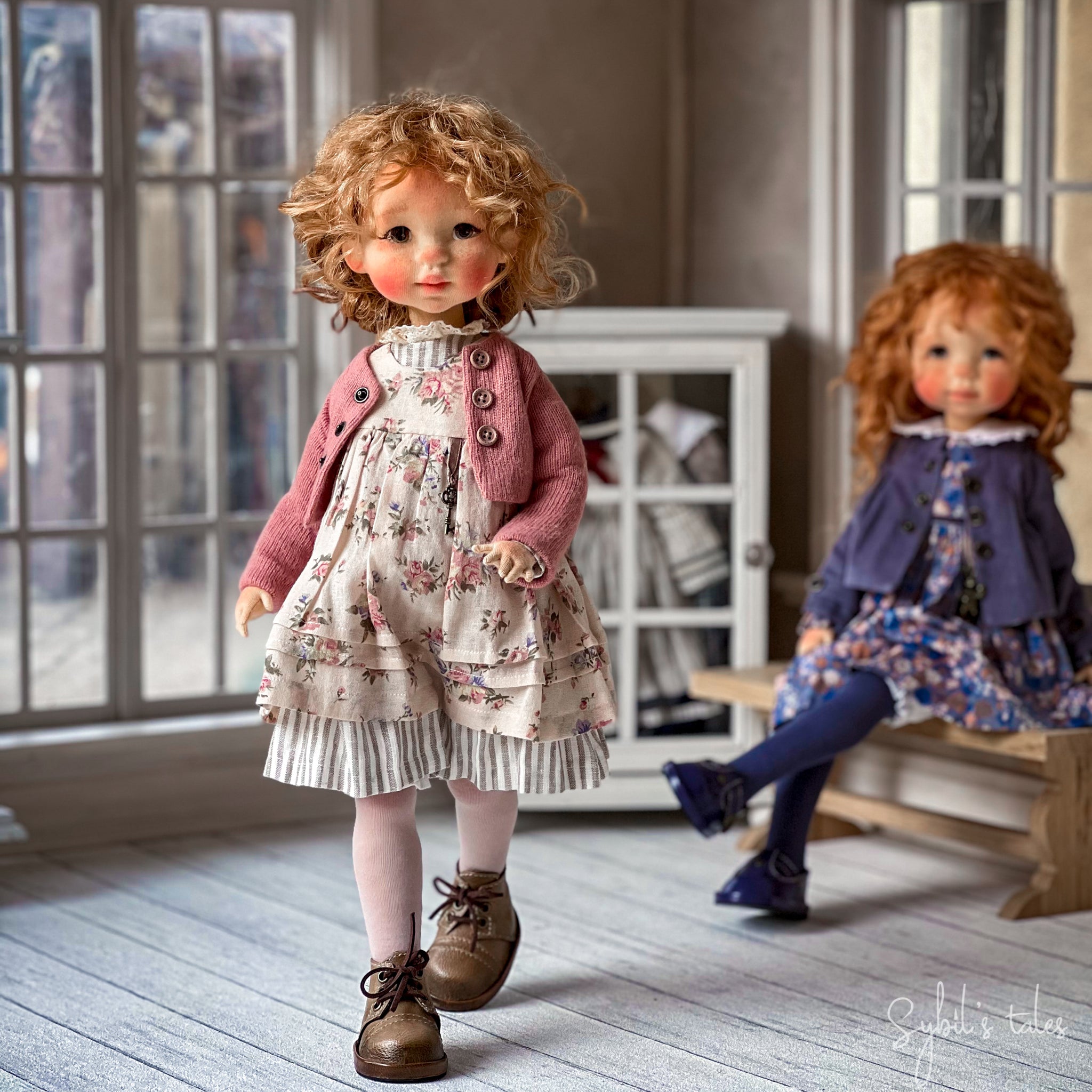 Little Scarlett's curly hair, reminiscent of a Tiziano painting, framed her shy, childishly sweet smile dotted with a few freckles. In her presence, joy and innocence colored the world in vibrant hues, capturing the hearts of everyone around her. Pippa's energetic personality, set against Scarlett's calmness, was simply fascinating. I see my dolls as a proud mother would, cherishing each one's unique qualities, just like children.